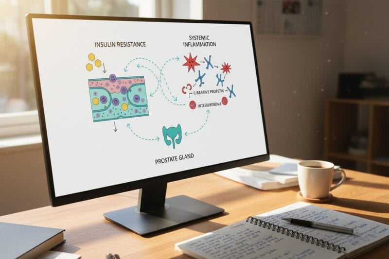 Chronic low-grade inflammation is a second pathway. Sedentary behavior elevates systemic inflammatory markers, including C-reactive protein (CRP) and interleukin-6 (IL-6). Prostate tissue is particularly sensitive to inflammatory signaling, and persistent inflammation creates an environment that can accelerate BPH progression and increase susceptibility to prostatitis.