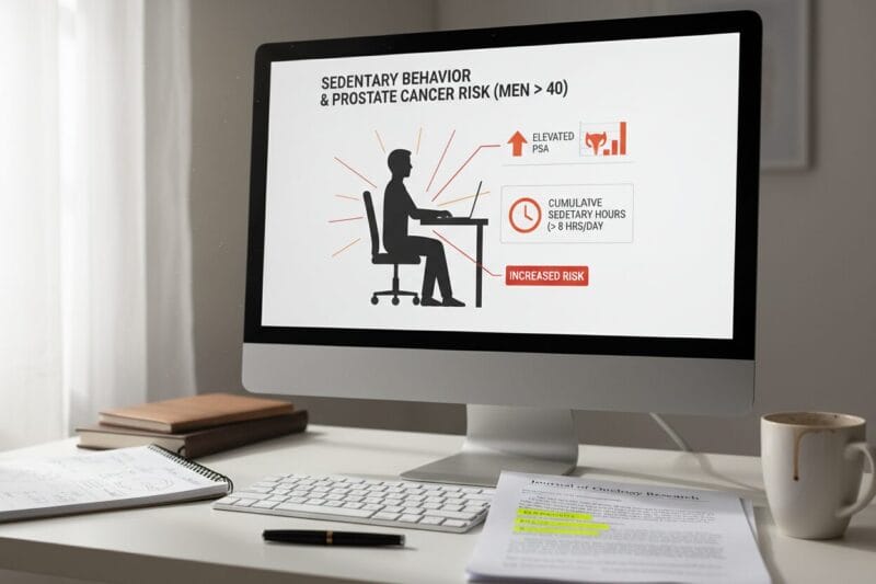 Data from the NIH-AARP Diet and Health Study found that men whose lifetime occupation involved mostly sitting had a 27% increased risk of prostate cancer compared to men in more physically active roles. A separate finding showed that men with an extra hour of sedentary time per day had a 16% greater chance of having elevated PSA levels, a key prostate cancer biomarker. PSA elevation is not a diagnosis, but it is a measurable early warning signal that something in the prostate environment is being disrupted.